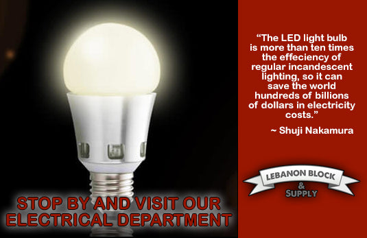 Lebanon Block & Supply has hundreds of brand name electrical supplies for the DIY’er and the Pro. Add some splash to your home redesign by adding new light fixtures and energy efficient light bulbs. Is it time to replace that older fuse box with a new load center? Check out our Electrical department for everything you need to get the job done.